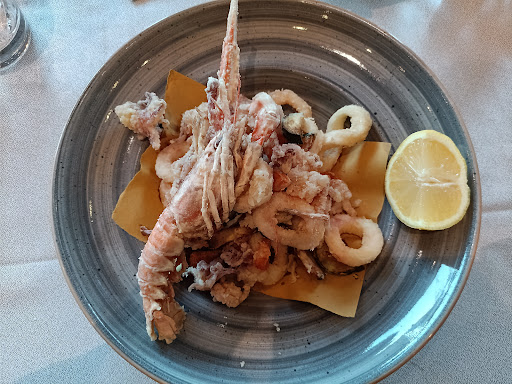 Da circa 2 settimane mi trovo nella zona del lago d'Iseo per lavoro e ci vado sia a pranzo che a cena. Il locale e bellissimo con una grande vetrata in sala che da proprio sui monti che circondano il lago vi lascio immaginare la vista seduti a tavola! Lo staff è eccezionale sono velocissimi e gentilissimi A pranzo offrono un menù di lavoro eccellente abbondate e particolare consiglio la pasta/gnocchi con crema di zafferano e verdurine che tra tutti i piatti che ho provato a gusto mio e veramente fantastico e non amavo molto lo zafferano fino a poco tempo fa, perfetta la cottura della pasta cremoso il piatto nel complesso, gustoso e delicato. comunque per essere un menù di preparazione veloce data la quantità di porzioni che devono uscire e vista l'affluenza di clienti lavoratori per la quale il tempo è sempre poco bisogna dare atto che studiato benissimo ed eseguito ancora meglio. La sera e ancora meglio!!! Io ordino spesso il gran fritto di pesce come in foto PAZZESCO!!!! Raramente si possono mangiare fritture perfette qui mi è capitato ogni volta! Leggera, asciutta, gli anelli morbidissimi si scioglievano in bocca, gamberi dolcissimi e i ciuffetti di calamaro fantastici. Il tiramisù anche quello buono in maniera esagerata. E tutti i piatti comunque bellissimi anche da vedere impiattamenti curatissimi fanno proprio venire fame voglia di essere mangiati che si parli di menù alla carta o menù lavoro Bravi competenti e gentilissimi Davvero uno dei migliori...