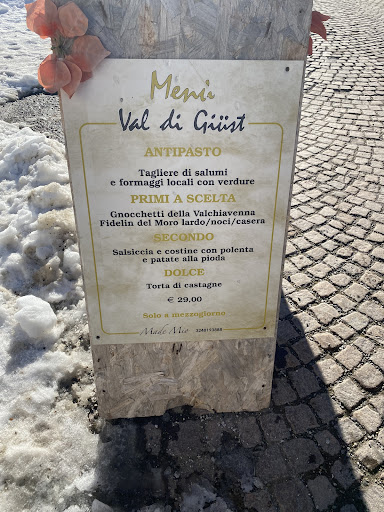Partiamo con il dire che ci troviamo in “uno dei più votati ristoranti/trattorie di Madesimo” cosa alquanto strana poiché vi racconto la mia esperienza. Ci troviamo in 4 a cenare in questo luogo che proponeva piatti tradizionali e rispecchiava ogni caratteristica con la quale si espongono alla clientela; bene entriamo, ci fanno accomodare e fin qui tutto ok. Attenzione però arriva il cameriere un po’ disturbato, inizia a chiedere svariate volte innervosendosi le nostre ordinazioni, io spiego di avere in allergia verso i latticini, egli evidentemente non sa cosa significa avere un’ALLERGIA poiché avendo chiesto ripetutamente e avendo spiegato che cosa sono i LATTICINI e che quindi anche il burro fa parte della mia allergia, mi portano poi la polenta da me ordinata ma con il BURRO. Chiedo di nuovo di poterla riavere ma mi dicono che non si può ( questo oltre alla ignoranza, porta a pensare che i piatti siano già preparati in precedenza data anche la loro tempestiva uscita dalla cucina; in circa 4 minuti anche una pizza). Il mio compagno ordina una pizza 4FORMAGGI, e indovinate un po’? arriva una 4STAGIONI. Per concludere? ci danno del pane, senza essere molto convinti se avesse latte o no, prima uno poi l’altro dicono si è poi no dopo che oramai lo avevo degustato. Conclusioni, sono stata male, la prossima volta fate una cernita...