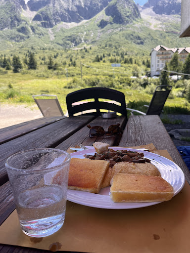 Read more31 Ottobre 2020 ore 13.00 Unico Ristorante aperto sul Passo del Tonale. Il parcheggio all'esterno è pieno ma condiviso da altre attività vicine. Entro e chiedo un tavolo per 4 e vengo accompagnato ad un tavolo nella zona bar, in vigore alle normative Covid19 lo apprezzo, ben distanziato. Il locale è ampio, ma allo stesso grazioso e accogliente. Il menu è ben fornito, ma come anche confermato dal titolare le porzioni sono abbondanti. Ho ordinato un Tagliere di Salumi e Formaggi piccolo, un po' originale l'impiattatura però accettabile, unica nota stonata il salame piccante della pizza assieme ai Salumi di montagna non era il massimo. Per i miei commensali una pasta all'arrabbiata, bella abbondante e gustosa. Per i piccoli una salamella alla griglia e una cotoletta accompagnati da tante patatine fritte. Come dolce scelgo uno strudel, la dotazione dei dolci è limitata da torte ben visibili sul bancone, e penso siano di produzione propria o fresche di giornata, infatti era buonissimo lo strudel. Conto nella media 60€.. Ci...