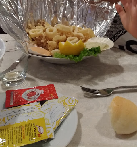 Di ritorno da una giornata passata sulle montagne, ci fermiamo in questo ristorante sulla strada statale 42. Data l'aria frizzante, ed il dehor adiacente alla strada scegliamo di accomodarsi all'interno, il personale gentilissimo ci accompagna al tavolo, ci viene consegnato un menù variopinto ma di gradevole impatto. Grande scelta di piatti a base di pesce, senza rinunciare ai tradizionali piatti tipici. Come antipasto Opto per un antipasto di pesce freddo, gli altri commensali un primo a base di Casoncelli fatti in casa, un fritto di Calamari, e per la bambina una cotoletta semplice con patatine. Da bere complice il viaggio di ritorno devo declinare a della semplice acqua frizzante, rinunciando a una selezione della cantina molto ben fornita. Nonostante la diverse tipologie di piatti arrivano tutti puntuali. E oltre a essere stupendi sono anche buoni ed strepitosi. Il mio antipasto è a base di crostacei e molluschi che nessun altro posto ho trovato così freschi, stesso giudizio lo esprimono i miei commensali apprezzando la genuinità dei Casoncelli, e soprattutto la stupenda scenografia che ha la porzione di calamari veramente fantastica.... Complice le porzioni abbondanti decidiamo di dividere la cena assaggiando ciascuno il piatto dell'altro. Complice la sensazione di caldo (dovuta all'abbufata di un nostro commensale) optiamo per ordinare il dolce spostandoci nel dehor esterno dal quale sia una gradevole vista sulle montagne, richiesta ben accettata dal personale. Ordiniamo Dei dolci classici (crema catalana e semifreddo) e vengono presentati i serviti accompagnati la frutta di sottobosco. Caffè come chiusura gradevolmente accompagnato da liquori fatti in casa ( ne ho assaggiato solo uno Dato che avevo ancora come scritto il viaggio di ritorno da fare). Unica nota negativa è la mancanza di poter utilizzare la tessera Lyoness al ristorante, è possibile solo utilizzarla se si pernotta nell'albergo..... Peccato..... Sarebbe...