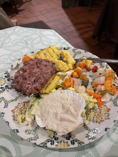 Read morePosto consigliato da amici che abitano nelle vicinanze..non avendo prenotato xché eravamo nei dintorni x una gara di bocce siamo arrivati sul posto verso le 12.30,il primo momento sembrava non ci fosse posto x 8 persone ma poi ci hanno fatto accomodare.Che dire mentre ci portavano al tavolo non facevo altro che guardarmi in giro mi sembrava di essere in un museo un misto di roba vecchia,antica..,mentre scendevo sempre più in basso non mi capacitavo dalla roba che c'era appesa al soffitto appoggiata ai muri,accumulata in ogni angolo ,ripiano ,mai vista una cosa del genere.Ho dato 4 stelle all'ambiente perché a me piace vedere queste cose ma a chi non piace il genere sicuramente torna indietro subito ..il cibo buono però siamo riusciti a mangiare solo il primo xché le porzioni esagerate non ci hanno consentito di assaggiare il secondo e sinceramente sono venuti a ritirare i piatti dopo una ventina di minuti e dopo ancora piu di un quarto d'ora a chiederci se volevamo il secondo, erano ormai le 15 passate e alcuni hanno preso un dolce e altri un caffè..com'è menù c'era un foglietto con scritto a mano i piatti presumo del giorno senza prezzi..sinceramente avrei preferito porzioni un poco più piccole cosi mangiavamo anche il secondo( non tutti sono in 2 da poter dividere)o perlomeno nel momento che si ordina avvisare...se un giorno ritornerò...