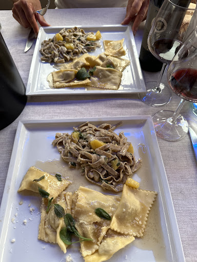 Read moreCibo molto molto basilare, tagliatelle coi funghi che non sapevano di niente e braciola sottile bruciacchiata. Abbiamo preso un piatto a testa e una bottiglia d'acqua in 2, speso 60€ perché era "menù fisso" a 30€ a persona, che però non era stato comunicato in nessun momento. La cameriera ha elencato i piatti senza farci vedere un menu o indicare prezzi. Al momento del pagamento abbiamo chiesto lumi per i 60€ per due piatti e ci ha detto che c'era questo menù fisso. Abbiamo fatto presente che ce l'avrebbe potuto dire, e lei senza un minimo di interesse fa "pensavo lo sapeste", ma come si fa a sapere se non è scritto da nessuna parte?? Comportamento molto poco onesto e trasparente, e anche poco cortese, abbinato a una cucina da tavola calda o mensa...
