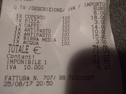 Read moreIeri sera abbiamo avuto la malsana idea di cenare in questo locale. Ci hanno fatto accomodare in fondo al ristorante vicino alla porta che affacciava su una sorta di locale magazzino dove si intravedevano delle attrezzature, dei frigoriferi...poco male...senonche' proprio lì in bella vista si è messo del personale del ristorante a FUMARE!!! Appena fatto notare la cameriera ha subito riferito il nostro fastidio più che lecito visto che il fumo è vietato...a quel punto non esistendo una porta viene tirata una tenda...peccato che indifferenti continuano a fumare e la tenda poco ripara la ventata di fumo che ci arriva...a questo punto la qualità del cibo non viene valutata in quanto prevale l'odore di sigaretta. Alla cassa ci viene detto che non è stato possibile fare smettere di fumare perché la persona era niente meno che la proprietà...potaaaa...sostenendo che il locale anche se comunicante con il ristorante a sua volta comunicava con l'esterno quindi secondo lui era possibile spipazzare ...certo tutti i locali aldilà del muro comunicano con l'esterno...se questo è il trattamento per i clienti non ci...