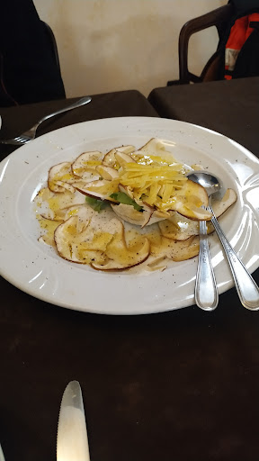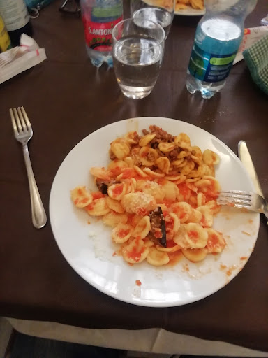 La prima impressione è quella di un bellissimo ristorante! L'atmosfera è di tipo familiare, i gestori, coniugi, sono squisiti. Lui ai fornelli e si occupa anche di trovare materie prime in prima persona come i porcini che ci sono stati serviti crudi e freschissimi, raccolti la notte precedente. Lei invece serve ai tavoli, molto ossequiosa e attenta. Le dosi dei porcini freschi però non sono state a mio avviso sufficienti dato anche il costo del piatto. Il piatto infatti si presentava bene ma direi che i funghi affettati a fette trasparenti erano più o meno 2 e di dimensioni piccole con un cestino di pane a riempire il piatto e appagare l'occhio. I porcini fritti invece avevano un impanatura salata e al limite di cottura (molto scuri) e sono rimasti piuttosto pesanti di digestione.. Le tagliatelle ai porcini fenomenali, davvero eccelse, mentre quelle all'asino sentivano nettamente di sale, forse di glutammato, coprendo il sapore del sugo e rendendo necessari litri di acqua per dissetarsi. Nota dolente la radio sintonizzata su 102.5 con tanto di pubblicità, radiogiornali, musica TRAP, Raggeton e tormentoni estivi che sinceramente in un locale del genere non solo stonano ma rimangono piuttosto fastidiosi, sopratutto a cena. Alla richiesta di cambiare musica questa è stata spenta per una 30ina di secondi per poi chiederci di riaccenderla, ma d'altronde è giusto che siano i gestori a decidere che musica mettere nel proprio locale.. Il conto sinceramente più alto rispetto all'unico € che appare in google che dovrebbe indicare un menù economico. I secondi si aggirano sui 16/18 euro, troppi per una trattoria di questo tipo e gli antipasti e primi tra i 10 e 15 euro. Vino al bicchiere invece economico, di media qualità e abbondante. A malincuore 3 stelle per i sopracitati motivi (sale, quantità, musica, prezzo) ma 5 stelle alla gentilezza e all'impegno dei gestori. AGGIORNAMENTO svegliarsi di notte cotinuamente per finirsi un litro e passa d'acqua non è stato piacevole, troppo, davvero troppo sale usato in cucina.. Ma il peggio è stato per la mia ragazza che è stata SERIAMENTE male per tutta la notte e il tutto è da imputare a questa cena dato che è stata l unico pasto del giorno. Lascio due stelline, ma col cibo non si scherza, fate star male le persone con i vostri errori. Sconsiglio quindi...