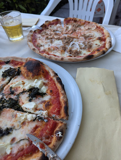 Das einzige Restaurant im Ort (sieht man von dem eher mittelmäßigen Strandpavillon ab) mit bisher etwas durchwachsenen Bewertungen, aber bei uns hat jeder eine Chance. Kurz: uneingeschränkt zu empfehlen. Cuperto 1,5 es vollkommen ok ist. Die Karte ist umfangreich. Wir hatten die Gnocchi, sehr lecker, sehr günstig, aber eben Primi Piatti, was eine VORspeise ist. Sehr lecker, scheinen hausgemacht. Davon wir aber ein 110 kg schwerer Deutscher nicht satt. Muss er aber auch nicht. Denn dann nehmen wir noch eine secondi piatti oder wie wir eine Pizza. Die sind wirklich Klasse. Dünner Boden, knusprig, reichhaltig belegt, groß, lecker und relativ günstig. Wir tranken eine Flasche Ca die Frati, die mit 20 Euro zu Buche schlägt teuer. Der Hauswein ist deutlich billiger, den haben wir aber nicht probiert. Der Service ist freundlich und spricht sehr gut Englisch. Im Garten sitzt man sehr...