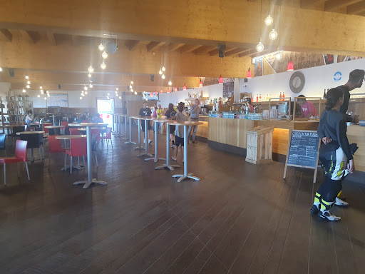 Plenty of seating and super friendly staff, arrived at the end of season but still sometimes had to queue for a drink, food is certainly average (ate the pizzas and a Ragu pasta dish) but served with a smile and relatively quickly school lunch/ canteen style. Beer is good and well priced for a ski resort, coffees are fantastically priced and the panoramic views are...
