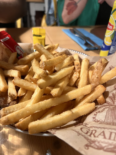 Abbiamo ordinato delle patatine da dividere (buonissime, peccato fossero fritte nello stesso olio del pesce, la quale ha lasciato leggermente il retrogusto di frutto di mare).