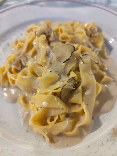 Ich habe übrigens neben einer Vorspeise und einem Dessert als Hauptspeise, die von Ihnen unten angepriesenen Tagliatelle mit Gorgonzola und Trüffel gegessen, und dies mit der Qualität der Restaurants Ihrer Kollegen verglichen.