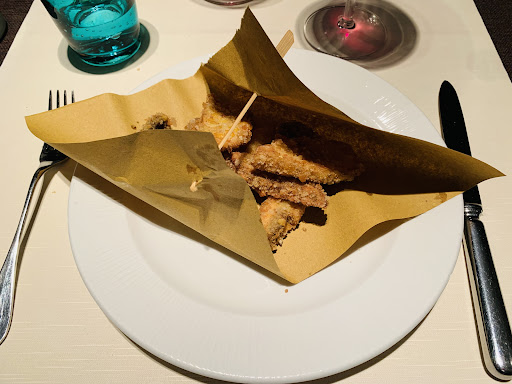 Ristorante molto carino poco fuori Brescia. Il locale non è facilmente visibile: si trova all'interno di una bella piazzetta che in qualche modo ricorda la Corte di un grande cascinale, non troverete la scritta, quindi prestate attenzione alle vetrine. Il locale è pulito, ordinato, arredato in modo semplice, ma sobriamente elegante. Il menù è originale e i piatti vengono presentati in modo "pulito", rispecchiando locale nel quale siete seduti. Tutto viene preparato al momento, compresi i dolci. Bella sorpresa l'offerta di funghi porcini freschi, proposti fuori menù, sia crudi sulla tartare di carne, che con le tagliatelle fresche e i bocconcini di manzo. Molto carino da parte del proprietario offrire un assaggio di porcini fritti, buonissimi e freschissimo peraltro. Uno spunto di miglioramento riguarda la ragazza addetta al servizio in sala, che manca un po' di esperienza e si vede. Per esempio Quando servendo la birra con la cartina servivino le è stato detto da un mio collega (esperto degustatore di birra) che servendo la così non faceva schiuma e questo non garantiva di gustare al meglio la birra, lei si è limitata a dire "a me hanno detto di fare così e ha continuato a versare e poi se n'è andata. Il suo servizio in genere è risultato un po' freddo e impersonale, comunque a parte lei il proprietario era molto gentile. Un altro piccolo neo è stato il calice di vino: per me un calice di vino è di solito metà/tre quarti di un calice e non poco più del fondo. Comunque a parte questo il locale è assolutamente consigliato e i prezzi assolutamente adeguati alla qualità del...