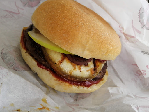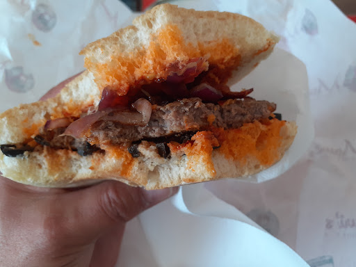 Read moreConvinti da amici a provare questo posto, siamo rimasti poco soddisfatti, forse perché l'aspettativa era alta dopo avere letto le varie recensioni. A parte i tempi di attesa discretamente alti, non possiamo dire di avere sentito il sapore della carne perché era affogata nel ketchup (in tre panini differenti, di cui uno avrebbe dovuto avere la maionese ed uno la salsa barbecue - ma quando abbiamo chiesto perché erano tutti con il ketchup la ragazza, che quel giorno aveva la luna storta, ha detto che "andavano bene così"), le patatine aromatizzate l'aroma l'hanno visto da lontano, ed il caffè aspetta aspetta non è mai arrivato. Io ho preso un panino che avrebbe dovuto contenere cipolla e mela ed in effetti conteneva due anelli di cipolla ed una scheggia (neppure una fetta) di mela. Magari era un giorno di quelli partiti male, per cui lascio il beneficio del dubbio, però non sono certo...