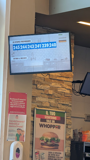 Racconto la mia esperienza burger King a piantedo, ho fatto la mia prima ordinazione e subito dopo ne ho fatta una seconda per mio marito che mi ha raggiunto un minuto dopo. Quando gli ordini erano entrambi pronti vado in cassa il commesso alto, scuro di pelle di sicuro straniero mi chiede come se fossi una cretina che non capisco niente se ho ordinato 2 panini uguali o se ho fatto lo stesso ordine due volte, e gli ho spiegato quello che ho detto prima. Ho fatto un terzo ordine per mia madre quando l'ordine era pronto in quel momento stavamo parlando, arrivando in cassa lo stesso commesso di prima si rivolge a mia madre dicendo "SVEGLIAA...!". Questo comportamento non mi va proprio giù. Voglio aggiungere che lo stesso ragazzo il mese scorso si e rivolto a me dicendomi "Eeeeh dai..." quando ho ritirato il mio ordine. Non ci si rivolge hai cileni questo modo. Maleducato e cafone. La prossima volta che rivedrò lo stesso ragazzo andrò in altri fast food e ordinerò una piadina o altro ma non tornerò di certo a questo burger king. Ah quasi dimenticavo la gran parte dei tavoli erano sporchi e con vassoi lasciati lì, disgustoso. Ci penserò 2 volte prima di...