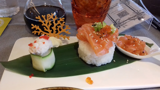 Read moreRistorante fusion, all you can eat. Piatti di buona qualità, sia per quanto riguarda la cucina giapponese sia per la cinese. Rapporto qualità prezzo buono, soprattutto a pranzo. Da sottolineare, tuttavia, che il menù pranzo é decisamente meno ricco di quello della cena e i piatti a base di gamberi, senza salmone, sono veramente pochi. Il locale è ampio e luminoso grazie alle vetrate sui muri, anche se i tavoli sono a meno di un metro di distanza l’uno dall'altro. Personale cordiale ed educato, anche se commette qualche mancanza e bisogna chiedere più volte le cose: abbiamo chiesto la maionese e ci hanno portato il wasabi, la carta dei dolci richiesta più volte, ecc.. Da tenere in considerazione che gli ordini hanno un limite massimo di 5 portate a testa. Il primo ordine é arrivato nel giro di pochi minuti, ma il secondo (di sole 3 portate) é arrivato a ridosso della chiusura della cucina, dopo diversi solleciti da parte nostra. Una semplice disattenzione o strategia per limitare il numero di ordini? Non lo so, ma é già la seconda volta che ci capita una cosa del genere e leggendo le altre recensioni non siamo gli unici che si lamentano di...