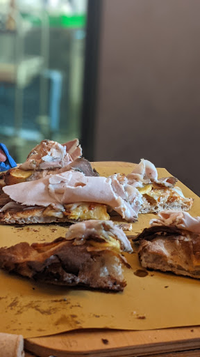 Noi abbiamo preso uno gnocco fritto con crudo che si scioglieva in bocca, era buonissimo e una pala bigusto con porchetta da un lato e Zola e pancetta arrotolata dall'altro. L'impasto era leggerissimo e il condimento equilibrato e gustoso.