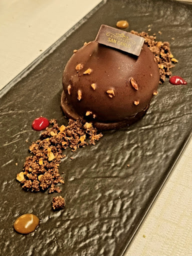 Ambiente caldo e casalingo; due ragazzi "di una volta" (marito e moglie) continuano una lunga tradizione di famiglia e per questo motivo è difficile che sbaglino. Sempre interessanti i pizzocheri e la pasta preparata con grano saraceno; il salmì e bresaola di cervo, come il resto del menù. il tutto annaffiato da vino valtellinese, uno meglio dell'altro, delle molte e rinomate aziende locali. Ci sono stato parecchie volte, ma non ho mai avuto la fortuna di trovare gli chat (peccato per me : sono la mia passione, naturalmente anche i pizzocheri). Discorso a parte per i dolci, tutti fatti in casa e deliziosi: la tentazione è sempre forte oltre ad essere difficile la scelta: ma anche "i forti" cedono. Come si può vedere dalla foto in apertura, la location è in un fabbricato "ormai storico" che si trova in località San Carlo di Chiuro (da qui il nome del ristorante) al bivio tra la strada statale direzione Sondrio - Tirano e quella che porta in centro al paese (vicino alla chiesetta della Madonna della neve). Ampio parcheggio nell'area di fronte. Ottimo per gruppi, ma anche per famiglie. MERITANO MAGGIORE ATTENZIONE, ne vale la pena. Alla...