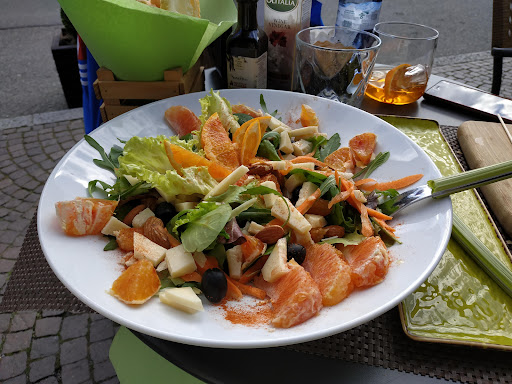 Read moreOttimi brunch e spuntini, qui. Una gigante e saporita focaccia farcita, una splendida insalata spicy, con insalata mista, carote arance, olive nere, mandorle e peperoncino...forte! Se non vi piace il piccante, fate portare il peperoncino separatamente, come giustamente hanno fatto per i condimenti tradizionali (olio, aceto, sale e pepe) o chiedete paprika. Vale la pena provarla! È un piatto unico gustoso. All'interno cioccolatini artigianali e atmosfera molto simpatica ovunque. Il locale di affaccia sulla piazza della Basilica di Tirano (Santuario), in un posto molto tranquillo, con raro passaggio di auto e nessun disturbo per gli avventori. Non manca il parcheggio, prospiciente il locale. I servizi igienici sono ordinati e puliti. Ottima scelta per una pausa...