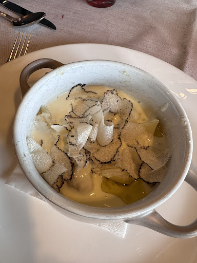 Trovato il nuovo posto del cuore! Ci è stato consigliato da un amica quindi ci siamo fidate, ed abbiamo fatto benissimo! La location è fantastica e con vista sulle montagne, peccato non aver richiesto un tavolo che dava sulla vista. Ambiente curato, personale professionale , premuroso e cortese. Menu molto vasto ( forse anche troppo). Io ho preso come antipasto le patate cotte sotto cenere con fonduta di branzi e tartufo , un equilibrio di sapori pazzesco, impossibile trovare un difetto. Come primo i canederli alle erbe selvatiche di montagna, non è un piatto che ordinerei di nuovo per mio gusto personale, ma anch’esso era saporito, e molto equilibrato nonostante gli ingredienti poveri e pochi e questo è da apprezzare, perché in pochi cuochi hanno l’abilità di fare dei piatti di alto livello con ingredienti poveri e semplici, richiamandoli più volte nel piatto in diverse consistenze. Il dolce ( cheesecake ) anch’esso sublime , leggero, non grasso e formaggioso, l’unico difetto che ho trovato in tutto il menù che ho degustato, l’ho trovato qui, la frutta non era frutta di stagione, quindi magari prediligerei quella di stagione, e il biscotto lo avrei preferito più croccante come nella vera cheesecake, si sentiva poco la consistenza e il sapore del biscotto appunto. Ma comunque un dolce davvero fatto bene! Torneró sicuramente. Prezzi più alti della media ma giustificati dall’alta qualità della materia prima e dalla location. Apprezzatissimo l’entrèe di benvenuto, e il pre dessert ( cannoncino favoloso) complimenti...