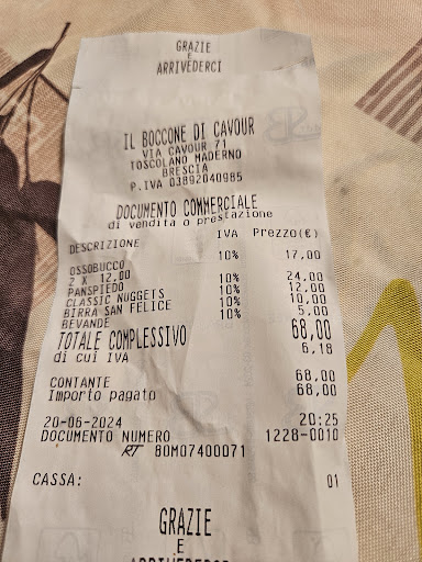 Abbiamo ordinato un asporto: pan spiedo, ossobuco e per la baby nuggets con patate. Il panino pan spiedo non è male, è ripieno di carne di pollo e costine (disossate), polenta e patate. Forse ci statebbe bene una salsina per renderlo meno asciutto, ma è buono e la carne era cotta perfettamente. Costo 12€ per cui ottimo rapporto qualità-prezzo. Per il menù della baby sono contenta che invece delle solite patatine fritte c'erano le patate al forno e i nuggets erano nella giusta porzione. 10€. L'ossobuco era buono, personalmente eviterei i pomodori a fette ma è un mio gusto personale. Era cotto bene, si scioglieva in bocca ed era saporito. Da menù che abbiamo trovato online doveva essere servito con risopilaf, che però non abbiamo avuto, non so se per dimenticanza o cambio menù. Abbiamo preso anche una birra artigianale del Garda, buona. Nel complesso, cena approvata, torneremo per cenare nel locale, che è molto carino e ben arredato. Ci hanno anche omaggiato con...