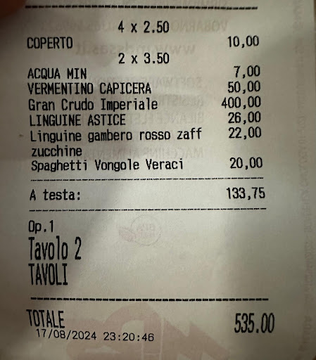 Read morePessima esperienza, inizialmente dalle recensione è pubblicità sui social le aspettative erano altissime, come da recensioni e il loro stesso menù l'unico ostacolo sarebbero stati i prezzi, che di fronte all alta qualità dei prodotti sarebbero stati accettati volentieri. Purtroppo però la serata è stata un disastro, assenza di molti prodotti in lista causa mancanza materia prima fresca ( questo inizialmente potrebbe far denotare una curata attenzione alla materia prima, la quale purtroppo non c'è), servizio degli antipasti già a rilento ma accettabile, crudi di buona qualità e freschezza ma purtroppo martoriati nella pulizia e nel servizio, e da lì il nulla, 2 ora di attesa dei primi senza alcun tipo di attenzione e preoccupazione verso il cliente, molti tavoli lamentandosi ricevevano a stento quello che avevano ordinato, andati via senza poter cenare, sul conto ovviamente vengono scalati i piatti non serviti, ma oltre a questo ne uno scusarsi ne un sconto simbolico per il disagio. Ricapitolando il potenziale delle materie prime c'è ma vengono maltrattate, il servizio è attenzione al tavolo pessimo, lentezza assurda e inconcepibile, altro da dire sul mangiare impossibile non abbiamo cenato. Voto 0 100€ di conto per non aver nenache potuto cenare (103€ per esattezza, neanche 3€ simbilici di sconto),...