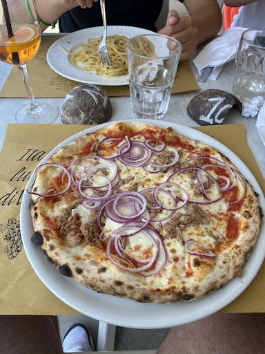 Absolute fantastic food and great service. We arrived nearly an hour before they opened (not knowingly) and they opened the kitchen early for us. We were open to suggestions and our waiter first asked what we liked and if we had any allergies or wanted to swap items out. He was very thoughtful! At his (great) suggestion, we ordered a seafood pizza and a meat and veggie pizza and a yummy strong red wine. Both tasted super fresh and yummy and were served quickly. Our waiter was so nice (used to work for Disney) and he made some excellent recommendations - he also suggested where we can rent things nearby. Havent had genuinely good service like that in a long time. Also you cant beat being on the beach. Also SUPER affordable....