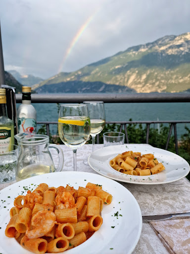 Das ich die Buchung immer direkt erledige macht die Sache schon spannend, Telefaxe in Deutsch und Englisch, und wenn's problematisch wird über Familienangehörige per Telefon auch gerne in Italienisch. Durch einen Running Gag ist für Wiedererkennung gesorgt. Direkt bei der Ankunft nach rund 1.000 Km gibt es als erstes einen Espresso und schon nach fünf Minuten auf der Terrasse fühle ich mich mit einem Blick auf den Monte Baldo und die Bucht von Limone völlig entspannt. Früher, ohne TV und Telefon, war es mir fast sympathischer. Die Einfachheit der Unterkunft, gepaart mit guter traditioneller Küche befreit von Stress und Belastung des Alltags. Die Lage ist grenzgenial! Etwas erhöht über dem See, direkt an der Altstadt, mit direktem Zugang zur Mole ist einfach unglaublich. Die gewissen Störungen durch die benachbarte Kirche nimmt man gern in Kauf. Wer sich bei der Anfahrt schon einmal durch die Via Daniele Comboni getraut hat, wird das nicht mehr vergessen, eine Gasse in der man die Außenspiegel besser an klappt - ein Erlebnis für sich. Das Restaurant bietet vom Frühstück bis zum Abendessen alles was man braucht um mit italienischer Küche zufrieden zu sein Ein Beweis dafür sind u.a. die Einheimischen, welche ihre Familienfeiern ggf. hier abhalten. Auch wenn man sehr spät mal ins Hotel zurückkehrt gibt die Küche ggf. noch einen Teller Spaghetti heraus.