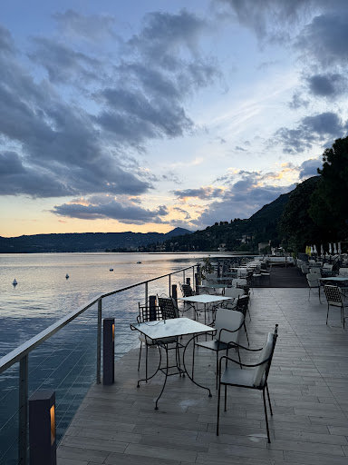 Read moreМы с мужем решили отметить годовщину свадьбы на Лаго де Гардо и к выбору ресторана для ужина подошли очень серьёзно. У этого ресторана были самые лучшие рекомендации из категории тех, где можно поужинать на 2их от 150€. Разочарование от ужасного качества еды началось уже с "это небольшая закуска от нашего шеф-повора каждому посетителю", а именно это было тоненький кусочек пресного мяса (типа нарезка) с листиком базилика и хорошо хоть чайная ложка какого-то сметанно-сырного соуса придавало какой-то вкус блюду. Мы с мужем это проглотили, переглянулись, ну типа "ладно, дарёному коню в зубы не смотрят". Для себя как стартовый блюда мы заказали тар-тар из говядины для мужа и салат с кальмаром для меня. Из хорошего по этим 2м блюдам было только оформление тар-тар и хорошо подготовленный (мягкий не резиновый) кальмар, и всё... остальное жесть: сам тар-тар был "никакой", мой салат (кальмар и картошка в какой-то сметаной заливке, плюс по краю тарелки размазанные маленькие порции зелёного соуса с уже каким-то выраженным нормальным вкусом) имел хоть какой-то вкус, опять таки, только когда вилку попадало немного из размазанного по тарелке зелёного соуса.... В целом: ВСЕ закуски, которые нам подали были Безвкусные, вообще никакиЕ, из категории когда обедаешь в студенческой столовой и ешь, что дадут, потому что в любом случае надо что-то поесть! На главные блюда, мы нам обоим заказали местную рыбу из озера на гриле, потому что обычно она хороша (мой муж практически из местных и на самом деле прекрасно знает и понимает КАКИЕ вкусы у блюд должны быть). И вот нам принесли долгожданное филе рыбы на гриле. М-да... тут даже внешний вид блюда был: явно подгоревшие 4 кусочка филе на на грани свежести листиках салата. Жесть... Тут я уже не смогла заставить себя это съесть и после деления филе на "сгоревшую не съедобность" и "то что не сгорело", отдала половину от съедобной части мужу, хотя у меня даже язык не поворачивается назвать это блюдо съедобным! Я всегда заказываю себе свежую рыбу (морскую или озёрную в зависимости от места, где мы едим), но чтобы так испоганить свежую рыбу на гриле - это надо уметь, хотя такая же фигня была и в "крутом" ресторане в Падове. Мы всегда заказываем себе десерты и обычно они очень хороши в Италии, но тут мы решили не рисковать. Все блюда нашего ужин был реально НЕ вкусные и оформлены так себе. Мы не скрывали наше мнение, когда нас спросили на выходе "Как вам понравилось?" и однозначно ответили что мы никогда не вернёмся точно. Из плюсов заведения только расположение самого ресторана с видом на озеро и персонал говорящий на английском, хотя почему-то бутылку воды нам принесли газированную, а не как мы просили чистую. Так что и английский у них хромает. Мы практически всегда читаем рекомендации посетителей отелей, ресторанов и вообще разных мест на Гугл. Бывало конечно, что что-то было не так как пишут. Но чтобы такое не соответствие отзывов и реальности, у нас было первый раз. Неужели все эти люди, что оценили это заведение на "5" ни ели ничего лучше в их жизни?!?... Мне их...