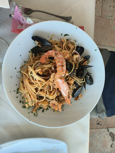 Read moreCi siamo fermate qui per pranzo durante un affollato sabato d'estate e devo dire che ci siamo trovate bene! Il locale, soprattutto all'esterno, è piuttosto ampio quindi anche in orari piuttosto di punta, un posto a sedere lo si trova anche senza aver prenotato con largo anticipo, un po' spoglio forse ma molto carino e ordinato. In più, è proprio fronte lago quindi se si vuole ammirare un po' il paesaggio mentre si pranza o cena, è perfetto. Il menù è turistico, quindi potrete trovare un po' di tutto, dalla terra al mare e il lago, ma noi abbiamo scelto il polpo con hummus di ceci al curry e salsa al prezzemolo con già annesso un contorno di patate arrosto speziate. Che dire, io e mia madre siamo due grandissime fan dei sapori orientali, specialmente se sono piccanti e pungenti, e in questo piatto c'era esattamente tutto ciò! Per cui abbiamo gradito tantissimo! Il curry poi l'ho trovato semplicemente favoloso! Il polpo grigliato si sposa proprio bene perché riesce a mantenere una buona morbidezza che contrasta la crosticina tipica della griglia esterna! La salsa al prezzemolo funziona come contrasto invece, proprio perché è molto fresca e erbacea. Detto questo, noi abbiamo apprezzato perché appunto a gusto, ci siamo trovate benissimo, però se non siete invece molto propensi a sapori così forti, sappiate che invece questo piatto è così, anche se non è esplicitamente segnalato. Abbiamo poi concluso con un sorbetto al limone, speravamo speravamo in un dessert dal gusto più fresco sinceramente, invece lo abbiamo trovato un po' pesante però comunque buono. Il personale che ci ha seguite è stato molto cordiale, gentile e veloce, i prezzi sono assolutamente in linea con la location in cui il ristorante si trova. Sicuramente...