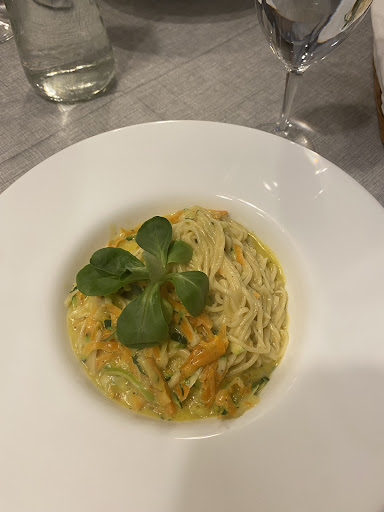 The rustic ambiance is perfect with the vaulted ceilings. Despite eating out on a Saturday evening, we caught a very quiet time, which is why everything went super fast. This was most likely due to low season. We were apparently served by the chef, who simultaneously very carefully looked after the guests as a waiter (with very good command of German) and as a cook for the dishes. That was a very pleasant feeling for us and a guarantee that everything was fresh, homemade, and served with love.