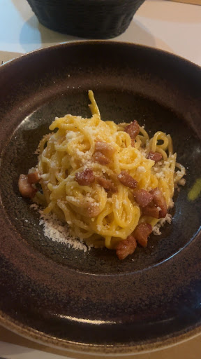 Read moreFrequentato dallo scorso anno come ristorante, mai assaggiato la pizza, seconda visita in questo 2021 il ristorante ha cambiato gestione e sembra voler passare a una cucina un tantino più sofisticata, i primi e i secondi sono piuttosto ricercati ed elaborati eppure c'è come un senso di affanno, un voglio ma non posso anche quando il locale non è stracolmo di avventori: un secondo di polipo piuttosto duretto, le paste invece sembrano meglio anche se di sabato sono migliori e quasi esaltanti, un risotto perfettamente mantecato per es! di martedì un po' meno riuscite! ma i prezzi sono decisamente alti, primi e secondi necessiterebbero una sforbiciata di almeno 2-3 euro! Ma la brutta sorpresa è stato un tiramisù non presentabile: un secchiello quasi duro di pesante crema al mascarpone senza l'ombra di un gusto di caffè o di altro liquore con pochissimi savoiardi o Pavesini che lo differenziassero da una triste mousse al mascarpone dimenticata in frigo, no no! Il servizio è simpatico svelto e cordiale e tuttavia dovrebbero avvertire il cliente (e più che mai quello che non si limita alle economiche pizze!), orientarlo sulle cose buone, alla richiesta dei dessert insomma neanche nominare il tiramisù se non perfetto e fatto in giornata o almeno il giorno prima! Si rimpiange la perfetta cucina casalinga e senza...