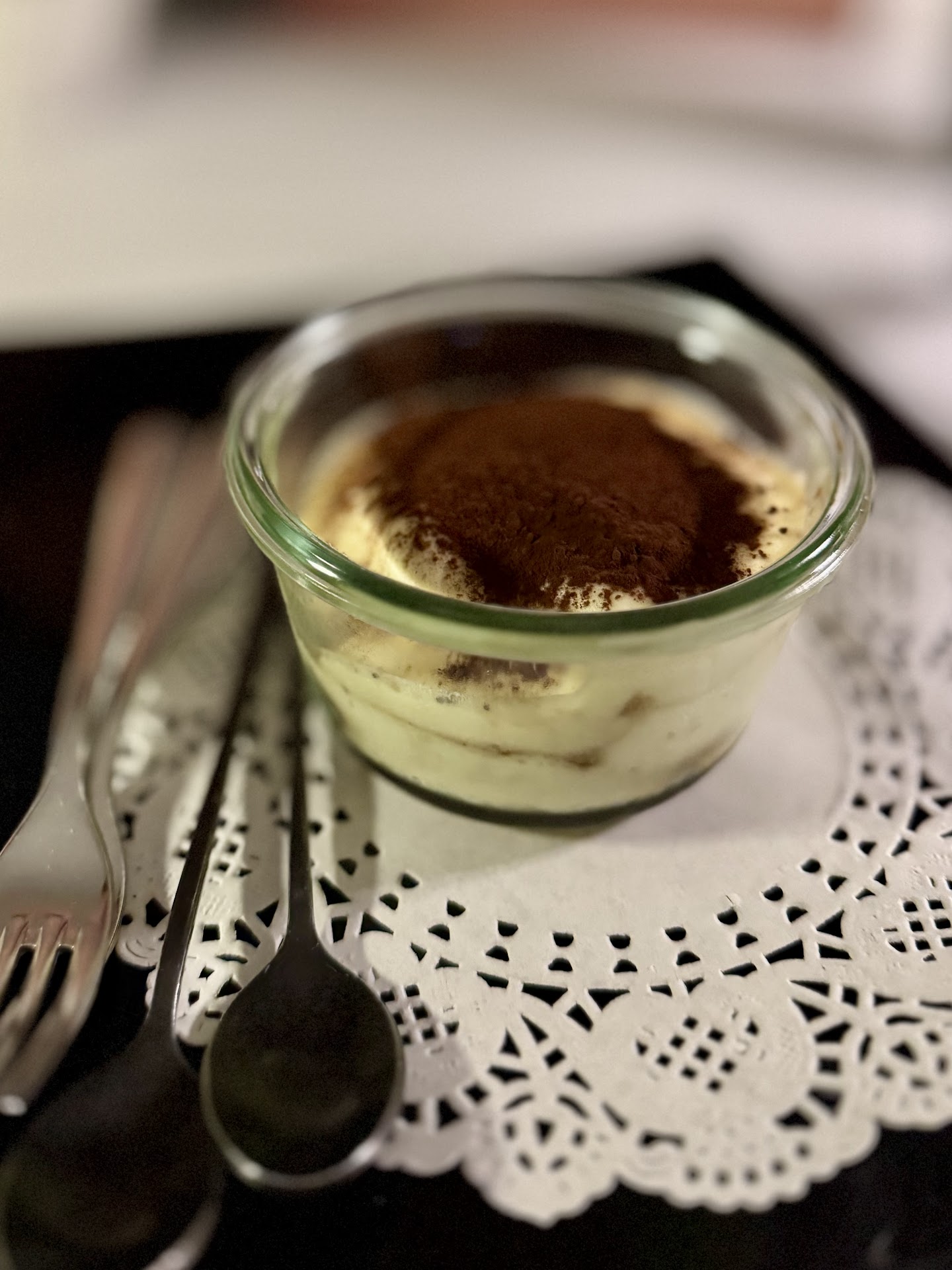 Unfortunately, the dish was disappointing: the burrata was sour, the tuna tartare was whitish and so finely minced it looked like baby food, and the risotto itself was tasteless, dominated only by butter and parmesan. The so-called squid ink seemed nothing more than food coloring. We pointed out to the waiter that we didn’t enjoy the dish, asking to send it back untouched and to see the menu again.