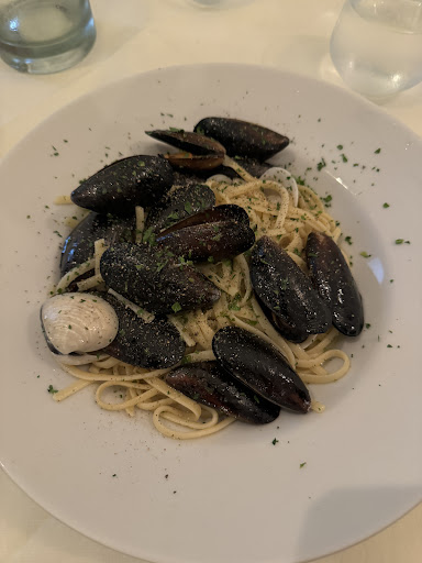 We were more or less „greeted“ at 21.30h, 1.5h before the closing time by a waitress and the super annoyed-looking cook who didnt want to serve us at all initially because it was „already too late“, the oven and the grill were allegedly already off in the middle of the evening. Eventually we got a table in the empty basement. Then we waited there for another 15 minutes before my friend finally managed to attract the attention of the waitress. We were then informed by another waitress that they had been discussing for 15 minutes (?) and that we would only be able to order a pasta dish because „they had too many dishes to wash“ and would then be given another 10-15 minutes to finish it. After that time, the most bland and uninspiring pasta with vongole and cozze of my life came to our table, swimming in a mixture of soup and oil as demonstrated in the pictures and with multiple mussles refusing to open up. We then got out of there asap and the waitress asked „no coffee or dessert?“, but we told them we didn‘t want to take away any more of their time and called it a night. The desserts in The tray didn‘t look particularly appetizing anyway and on the way out we saw the 6 tables full of the patrons who were already there when we were entering earlier, still not having had their half-empty plates removed (most of them were also remains of the same pasta swimming in the same concoction so apparently noone entering after 2 hours of closing time was allowed anything else than pasta because of „washing dishes“), so I guess it was a long night for the staff to „wash dishes“ after that. Cannot recommend under any circumstances, food as horrible as the service and they seem to not want to have to serve paying customers anyway. I truly cannot understand how they got such a...