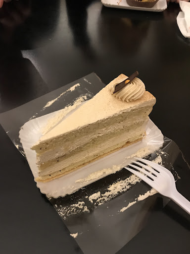 Read moreThis place is something between a confectionery and a bar. You can go here for a focaccia in the morning, cakes, sweets and coffee during the day, and glass of wine/Prosecco/whichever alcoholic beverage you fancy in the evening. It's sort of an upscale place, still very cosy. Very helpful and polite English speaking staff. Plate of small bite-sized snacks comes with every order in the "bar" part of the place. It's definitely a nice touch. I enjoyed the cake very much, unfortunately can't say the same about the plastic foil/fork. Without the disposable plastic, it would be 5 star...