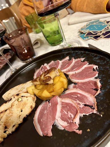 Read moreEsperienza estremamente negativa: il pasto è stato gradito ma l’esperienza è stata completamente rovinata dall’inettitudine e la maleducazione della cameriera e della “responsabile di sala”. Appena entrati abbiamo richiesto un tavolo per due (non avevamo prenotato) e sembrava di aver fatto un torto alla responsabile di sala. Preso posto abbiamo atteso almeno 10 minuti per ricevere i menu, nel frattempo si sono seduti in un tavolo vicino al nostro quattro persone di una certa età, a quanto pare conoscenti di un certo “Cesare” ed il servilismo della cameriera nei loro confronti era quasi rivoltante. Mentre loro avevano già ordinato a noi non era ancora arrivato il menù (già sollecitato più volte). Arrivato e consumato l’antipasto (un tagliere con un solo piattino di cortesia nonostante avessimo specificato di volerlo condividere) é stata l’ora della portata principale: un piatto di tagliolini e una guancia. I tagliolini sono arrivati ma dopo 5 minuti la guancia ancora non arrivava. A questo punto arriva la cameriera e ci avvisa che c’è stato un problema con la comanda e la guancia non era ancora stata preparata, dunque chiedo di annullare l’ordine ma la caposala interviene e ci dice che in realtà la stavano impiattando, l’esatto opposto di ciò che ci aveva appena detto la cameriera. Dopo 15 minuti ancora non era arrivata, dunque mi sono sentito preso in giro: capisco che ci possano essere dei problemi in cucina ma prendere in giro i clienti così non va bene. Sono entrato per confrontare la caposala che con il suo ormai consueto modo maleducato mi liquida velocemente, chiedo allora di finire qui la cena ed ho pagato solo quello che abbiamo consumato. Ristorante altamente SCONSIGLIATO, non per il cibo che è onestamente buono, ma per il trattamento riservato dalla caposala, a meno che non conosciate anche...