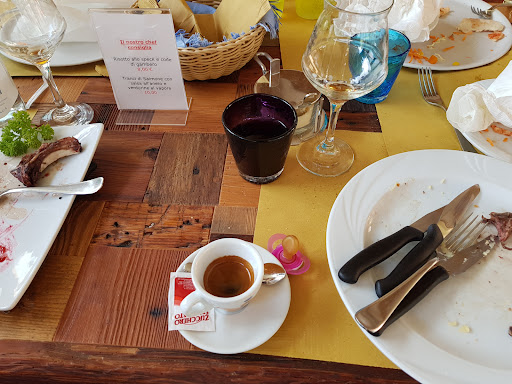 Abbiamo scelto di pranzare in questo locale avendo letto le buone recensioni sulla loro pizza. Le nostre 3 bambine di 1, 3 e 6 anni avevano voglia di pizza e infatti l'hanno mangiata volentieri. Noi invece abbiamo scelto la minestra di farro alla trentina, il risotto con lo speck e gamberi (il piatto del giorno consigliato dallo chef) e un piatto di braccioline di cervo con polenta e marmellata ai mirtilli. Buone le braccioline e la marmellata ai mirtilli, molto buono il pane ai semi di finocchio; il risotto eccessivamente salato, tanto da non gustarne il vero sapore, la polenta l'abbiamo lasciata nel piatto e la minestra di farro era mangiabile. Quello che mi ha colpito di più (negativamente) è stato il servizio al tavolo. La cameriera è stata contrariata dal fatto che abbiamo chiesto di preparare prima per le bambine, dandoci così l'opportunità di leggere con calma il menù che sembrava molto variato. Però ci ha accontentati. Quando le abbiamo chiesto di portarci anche da bere, ci ha detto che sarebbe tornata quando avremmo scelto anche il mangiare. Quindi siamo rimasti assetati...Dopo aver mangiato i primi, ci chiede gentilmente se vogliamo dare un'occhiata alla lista dei dolci; quando le diciamo che aspettiamo solo il secondo, risponde fra sé e sé "ah è vero, voi avevate anche il secondo". È ritorna con il piatto dopo più di 15 minuti... Per concludere ho chiesto un caffè, servitomi fra i piatti sporchi. Forse abbiamo scelto il giorno sbagliato per pranzare in questo posto, ma decisamente non...