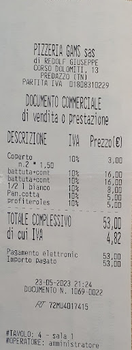 Read moreUnfortunately, I have to write a bad review. I would not recommend to order meat in this restaurant. We have ordered meat, and the dish tasted like normal, but ~1 hour later, both of us had terrible stomach aches. We didn't eat anything somewhere else, so these sudden stomach cramps and pain were caused by food from Ristorante Gams. We didn't sleep all night because of this food poisoning. And next day we needed to drive to another region, and it was extremely hard.
