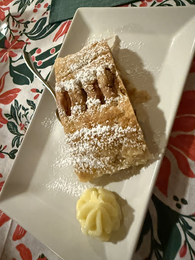Read moreAmbiente un po’ affollato e caotico, ma personale disponibile e gentilissimo. Abbiamo prenotato per sicurezza dalla mattina per poter cenare la sera. Abbiamo ordinato in due: una birra un calice di vino una bottiglia di acqua un tagliere di salumi con una salsina (la cameriera ci ha riferito essere di rafano, troppo piccante per noi) gulash con polenta e funghi spezzato di cervo con polenta e funghi strudel di mele panna cotta ai frutti di bosco Premesso che eravamo in due, abbiamo speso 63€, il cibo era molto buono, sopratutto la carne che si sfaldava con la...