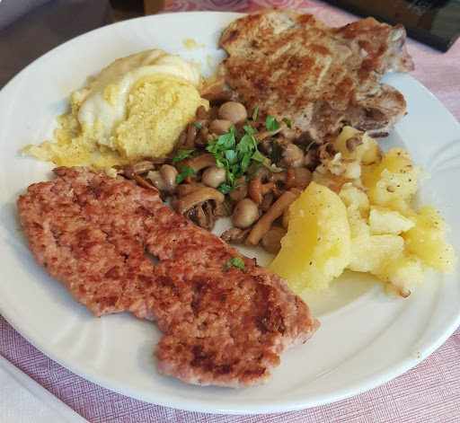 Ci siamo fidati delle recensioni, di solito molto utili per scegliere dove mangiare, ma questa volta non sono servite, anzi. Partiamo dall'inizio: giorno di ferragosto, arriviamo ed il locale, come ci si può aspettare, è piano. Ci avviciniamo all'ingresso e vedendo passare le cameriere (cercando di capire se perdiamo tempo o meno e soprattutto, se dobbiamo trovarci un altro posto) cerchiamo di intercettarne una. Nulla, fingono di non vederci ed una dice all'altra "se hanno fretta... aspettano". Solo la più giovane (che, devo dire, è stata molto cortese e disponibile) ci nota e ci fa accomodare all'interno. Sistemazione a dir poco scomoda, con uno tavolo affiancato ad una specie di armadio, con poco spazio anche solo per usare le posate, ma è comunque ferragosto, per cui soprassediamo. Dopo 10/15 minuti, viene a prendere la comanda un signore, diciamo non più giovane (che intuiamo possa essere il proprietario).Scegliamo un paio di piatti "tipici" e chiediamo un terzo piatto tipico con lo speck (presente sul menù), lui ci guarda, agita le mani e ci dice, oggi non si può (con aria scocciata). Ci adeguiamo e scegliamo un tagliere di salumi, "pubblicizzato" su un foglio all'ingresso. Anche per quello, dice, oggi non si può. Un tagliere di salumi no, ma 2 piatti tipici, che dovrebbero richiedere ben più lavoro invece, vanno bene? Capiremo poi il perché... Pochi minuti ed arrivano i "piatti tipici" consistenti in una salamina ed una braciola ai ferri (la prima troppo speziata e sicuramente non fresca e la seconda secca e dura come difficilmente mi era capitato di mangiarne), qualche pezzo di patata lessata, un po' di polenta con sopra una fetta di formaggio fatto scaldare (non era più caldo al momento in cui è arrivato in tavola) ed il "pezzo" forte... i funghi. Direte, siete a 900 metri, in trentino, saranno "tipici"... No, neppure quelli, salvo che i funghi champignon non siano tipici del Trentino... Il resto delle portate "tipiche" ricalcavano lo stesso modello. Una delusione completa, a cui diamo due stelle invece di una solo al servizio e solo per la cortesia e la disponibilità della cameriera più giovane, che ha cercato comunque di assecondarci, ma se cercate qualche cosa di "tipico", meglio non...