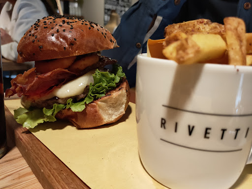 Read moreRivetti è sempre una garanzia! Qualche giorno fa abbiamo festeggiato un compleanno e quale miglior posto di Rivetti per un buon panino? Frequento questo locale da circa 10 anni e mi sono sempre trovata benissimo. Il cibo è di ottima qualità, gli hamburger sono davvero spaziali (manzo, pollo, pesce e anche vegetariani e vegani), abbinati a varie verdure, salse e fritti, il tutto accompagnato da favolose chips di polenta fritta o patatine fritte di vari gusti (tartufo, grana, rosmarino, paprika, lime..). Primi e secondi piatti a scelta per un'ottima pausa pranzo e non possono mancare deliziosi dolcetti. Colazioni e aperitivi di qualità sono sempre assicurati. Quasi d'obbligo prenotare un tavolo soprattutto durante i weekend. Dal parcheggio si può accedere facilmente all'ingresso del locale tramite una pedana adatta al passaggio di persone con mobilità ridotta che utilizzano sedie a rotelle ♿ La stessa è fruibile anche per passeggini, deambulatori, girelli ecc .. Dalle foto e video si può notare la larghezza della rampa e dell'ingresso del locale, tutti larghi almeno 1 metro. Anche il bagno del locale è raggiungibile con piccola rampa (no scalini), la porta è larga abbastanza per il passaggio di carrozzina e il bagno per disabili è grande per consentire l'entrata senza difficoltà e la mobilità all'interno. Locale davvero...