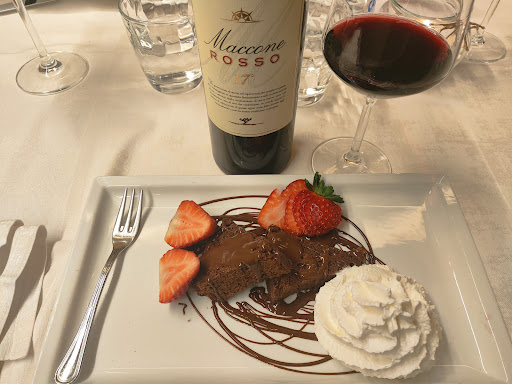 This restaurant was recommended to us by the hotel receptionist from Li Anta Rossa. Turns out it was a great recommendation as the food and atmosphere was awesome. I visited this place with my boyfriend while we were on vacation last week. We had four different waiters, all male and had different experiences with them during the time we were there. Our first encounter was with a guy with short brown hair with a thick Italian accent (or regional dialect) who greeted us as soon as we walked in he said since we had no reservations that the only available seating was outside. Once seated at a table outside there was a young man with a ponytail who served us our bread and drinks ( he was very kind and friendly). There came a different server, an older man with stylish glasses with a unique haircut who recommended us a special seasoning to go on a specific dish that we ordered. Then another young guy with dark hair and "distinguished ears" said we could finally come inside. We were pleasantly surprised they finally had an available table for us. The food was amazing and the well seasoned meat was very tender plus the wine that was recommended was also excellent. This place was a total vibe. It was like a woody mountain cabin where hunters go to cook their fresh game on an open fire and serve to their exclusive guests. I would defiantly come visit this...