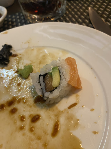 Il cibo giapponese era impiattato in maniera approssimativa a volte si scaldava per l'attesa e personalmente il pesce crudo preferisco mangiarlo più freddo i sashimi erano sempre annacquati l'utilizzo discutibile della maionese su quasi tutti i roll qualche maki era fatto frettolosamente e mancava proprio del pesce il pesce non dava l'idea di essere fresco e di qualità