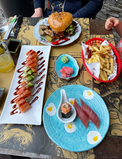 Read moreSiamo venuti un venerdì sera, il locale è piccolino e i tavoli sono abbastanza ravvicinati. Appena entrati ci hanno accolto bene e dopo un'attesa di pochi secondi ci hanno fatto accomodare. Premetto che non conoscevo questo locale, ma essendo amante di hamburger e sushi (spinto anche dalle recensioni positive) ho voluto provarlo. Mi è piaciuta assai l'idea della tovaglietta/gioco (in caso l'attesa dovrebbe protrarsi ci si può svagare). Personalmente ho preso un hamburger che ho divorato in quanto sia la cottura sia le materie prime erano ottime. Il locale non era pieno quindi ci hanno servito abbastanza in fretta. Non me la sento di criticare gli interni del locale visto che non è un museo, a me importa che il cibo sia buono. Purtroppo (spero che facciano tesoro di questo consiglio/critica) le patate al forno erano fredde e poco salate...all'inizio ho pensato fosse un caso ma anche le altre persone al tavolo con me hanno notato la stessa cosa. Se il sale fosse stato presente in tavola avremmo potuto salarle da noi. Per quanto riguarda la spillatura delle birre, viene fatta di fretta quindi ci si trova a bere una birra molto gasata (rimediate). Per il resto è andato tutto bene totale x 4 hamburger più 2 birre a testa e caffè 103 euro (soggettivamente un po' caro ma ormai è impossibile spendere meno di 20 euro per hamburger+media). Tornerò per assaggiare il sushi, ma cmq per me il panino è stato promosso a pieni voti. Dulcis in fundo verrete serviti da 3 ragazze che, oltre a essere di bell'aspetto, sono...