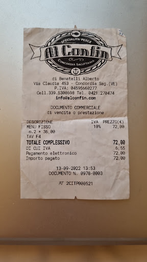 Read moreNon sono solita lasciare recensioni, ma questa volta mi sento di farlo perché merita. Sono venuta in questo ristorante più volte in passato e mi sono sempre trovata bene. Da quasi un anno sono diventata vegana e sono tornata Al Confin la scorsa settimana accompagnando mia madre mio fratello che invece amano il pesce. Comprendendo che la cucina vegana non sia quella del loro menù, mi sarei accontentata anche di una pasta in bianco, ma il proprietario (almeno presumo sia il proprietario), si è prodigato per farmi cucinare un sugo agli asparagi che non era in menù. Ho apprezzato davvero molto il gesto di cortesia spontaneo. Ristorante consigliato, sia per la qualità del cibo che per la cortesia di...