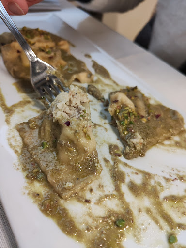 Sono arrivati i primi e le quantità nei piatti erano pressoché ridicole. Iniziati a pranzare ci siamo accorti che i ravioli con formaggio e pesto di pistacchio, al loro interno nascondevano delle acciughe Che in nessun momento sono state menzionate nel menu tantomeno dal cameriere nel momento dell'ordinazione. Grave molto grave poiché all'interno della nostra tavolata vi era gente con delle intolleranze.