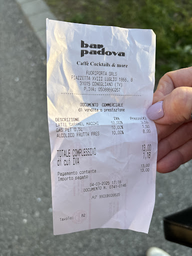 Read moreÈ bello entrare in un locale ed essere accolti col sorriso! (cosa rara a Conegliano). Staff giovane, sorridente ma allo stesso tempo molto professionale e preparato, non avendo ancora il menù stampato hanno saputo consigliarmi un cocktail buonissimo preparato con la frutta fresca, per di più accompagnato con degli sfiziosi cicchetti gratuiti. Devo tornare una volta per colazione perché mi sembra che abbiano una bella varietà di brioches fresche di pasticceria. Nonostante il locale fosse piuttosto affollato, siamo stati serviti in tempi giusti e i prezzi sono assolutamente in linea con gli altri...