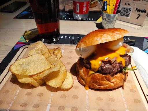 Read moreLocale che produce e serve una birra che meriterebbe di essere spillata a regola d' arte, ma così non è stato. Il cameriere che ci ha serviti è stato attento, cortese e scrupoloso, ma questo non è stato sufficiente a giustificare un rapporto qualità /prezzo/quantità inesistente: le porzioni di patate fritte e sgagliozze sono ridicole paragonate al prezzo; nel menù e specificato che l' hamburger dei panini è di carne mista (manzo e maiale) ma con rammarico ho constatato che era di sola carne di maiale, e di discreta qualità, accompagnato da delle discutibili chips unte e dal sapore sgradevole messe solo per giustificare il prezzo della portata che comunque non corrisponde alla descrizione del menù (evitabili). Non bene identificata la motivazione della richiesta di un supplemento di € 2 per il servizio dell' hamburger "al piatto", quando il prezzo del coperto è calcolato in ogni caso. Per ultimo, ma non meno importante, igiene e pulizia scarsissime: nel mio panino c'era un ingrediente non richiesto e non...