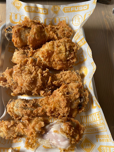 Read moreUn'esperienza stupenda, una bontà sorprendente. Qualitativamente non si può paragonare con i più famosi fast food. Qui il cibo è davvero ottimo. Abbiamo preso 1 panino pulled poll e 1 panino cordon bell squisiti, fantastici, umidi, saporiti. Quello cordon bell per me è stato davvero troppo buono e la croccantezza della sovracoscia di pollo era top. A seguire abbiamo preso il tris di carne dove abbiamo mangiato pulled pork, pulled poll e brisket (favoloso) accompagnato con del pane piastrato ed un insalatina croccante. Infine i fusi di pollo... i fusi di pollo sono stati sconvolgenti. Dei fusi enormi con una panatura croccantissima da togliere il respiro. Signori questo non è un classico fast food, qui c'è una ricerca dei piatti, degli accostamenti. Qui c'è del lavoro e di qualità sottolineo. Sicuramente ci sono aspetti da migliorare ma criticarle adesso, dopo 5 giorni di attività mi sembra insensato. Complimenti davvero, complimenti anche alla cortesia dei camerieri, ci torneremo sicuramente perché fusi può...