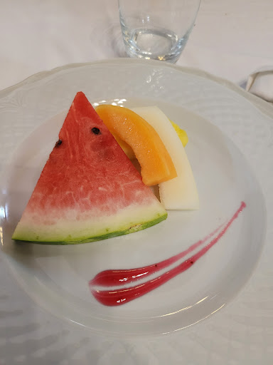 Frutta e dolce La frutta era composta da mezza fettina di cantalupo, mezza fettina di rock melon e mezza fettina di ananas, forse un po troppo minimalista La millefoglie alla crema, invece, era molto...