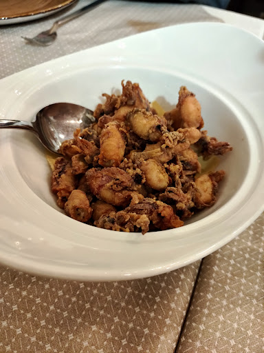 Read moreUn coupon preso dal sito bellavitainpuglia mi ha fatto conoscere questo locale che mi ha davvero sorpreso. Il voucher comprendeva antipasti, pizza, bevanda, dessert e amaro. Come antipasto ci è stato servito un cono di polpette davvero squisite, un filetto di sgombro marinato e delle scamorze affumicate in pastella con miele. Tutto ottimo. La pizza è di tipo sottile ma ben condita, molto leggera ma gustosa. Il tutto accompagnato da un calice di vino rosso buono. Come dessert ci è stato servito uno "sporcamuss" (sfoglia con crema pasticcera all'interno, servita calda) davvero squisito. Per finire, ho assaggiato il liquore di rum al cioccolato fatto da loro; molto buono. Staff gentilissimo. Dando uno sguardo al menu, i prezzi sono nella media. Lo scopo di un voucher è quello di promuovere un attività lasciando il cliente soddisfatto e deciso a tornarci e qui ci sono riusciti alla...