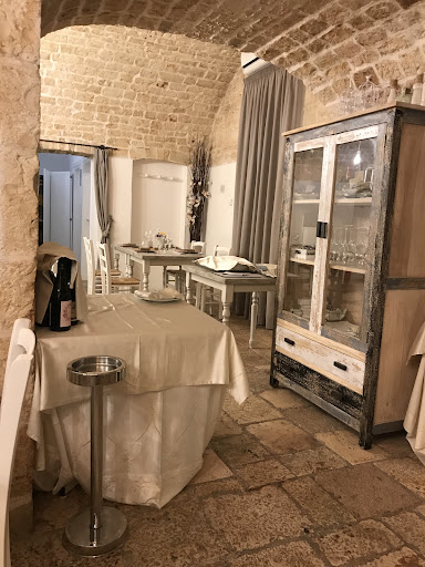 Innanzitutto ringrazio i nostri clienti che ci hanno invitato in questo posto fantastico, dove abbiamo avuto un pranzo che giusto per ripetermi definirò fantastico. A volte le ripetizioni sono pleonastiche, ma in questo caso l'utilizzo doppio della parola fantastico è dettata dal fatto che è stato tutto fantastico. Dopo questa (fantastica) introduzione, vorrei dirvi che la location (all'interno di una masseria che d'estate deve essere ancora più suggestiva) è molto romantica, sui toni del bianco e del beige e con una apparecchiatura nel nostro tavolo da 6 che ha favorito una serena convivialità. Tutte le portate sono state molto buone, a partire dagli antipasti, che hanno mixato ottime materie prime locali, fino alle fettuccine (non ricordo esattamente il condimento ma ricordo la bontà). Non siamo andati sui secondi, visto che si trattava di un pranzo di lavoro ed eravamo già in ritardo sulla tabella di marcia, ma abbiamo concluso con un buonissimo sorbetto. Il vino rosé che ha innaffiato il pranzo è stato degno accompagnatore. Non ovvia, anzi più che carina anche la presentazione del pane e dei taralli fatti in casa. Insomma, un posto da passare parola e consigliare e...