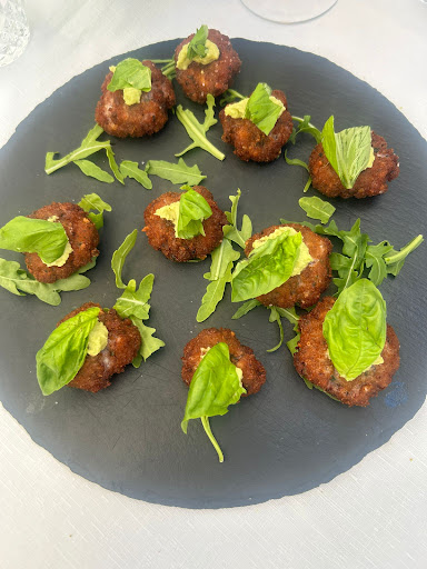Il potenziale di questo ristorante è indubbio, ma per raggiungere la raffinatezza a cui ambisce manca ancora qualche passo. La location è splendida. Mia madre mi ha raccontato la storia di questo ex convento trasformato in ristorante: un contesto che unisce fascino storico e un’aura di misticità, capace di suscitare rispetto e curiosità. Gli interni sono arredati con classe, i soffitti una meraviglia architettonica che cattura lo sguardo. Bella l’idea della cucina a vista, che trasmette ordine e pulizia. Il giardino, poi, è invidiabile: curato nei minimi dettagli, arredato con gusto, con luci ben dosate, tende decorative azzeccate e tavoli distanziati quanto basta per garantire comfort.