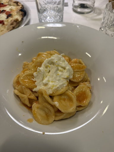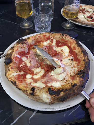 Read morePessima esperienza, il servizio disastroso. Ci hanno fatto accomodare in una saletta che aveva una sola altra tavolata grande che aveva già ordinato. Di lì in poi siamo stati dimenticati per 15 minuti dopo i quali abbiamo fermato un cameriere che passava nel corridoio per avere i menu, stessa cosa per ordinare, altri 10 minuti di attesa e nessuno che si presentasse al tavolo per prendere l’ordine. Cosa che non avveniva ai tavoli esterni che dalla vetrata potevamo vedere. Dopo l’ordine c’è stata un attesa di 50 minuti dove abbiamo visto servire tavoli esterni occupati dopo il nostro arrivo (anche dopo il nostro ordine). Chiediamo spiegazioni al personale, avendo ordinato solo pizza mentre fuori anche antipasti, sul come mai i tavoli esterni stessero già pagando e noi ancora aspettando le pizze. Ci è stato spiegato che siccome c’era minaccia di pioggia loro hanno deciso, senza la minima considerazione o avviso ai tavoli interni, di servire prima gli esterni. Dopo pochi istanti dalla nostra lamentela, si presentano al tavolo con una pizza cruda e carbonizzata allo stesso tempo con l’impatto mancante al centro. Ho mangiato gli ingredienti e lasciato quasi tutto l’impasto (visibilmente crudo al primo taglio). Ciliegina sulla torta, l’impasto napoletano che ho scelto ha anche il rincaro di 1,5€. Mia moglie, al contrario, è stata più fortunata, almeno la sua pizza era cotta.